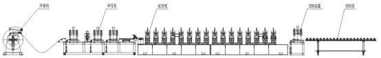开卷机——入料导正——辊压成型机——液压切断机——托料架