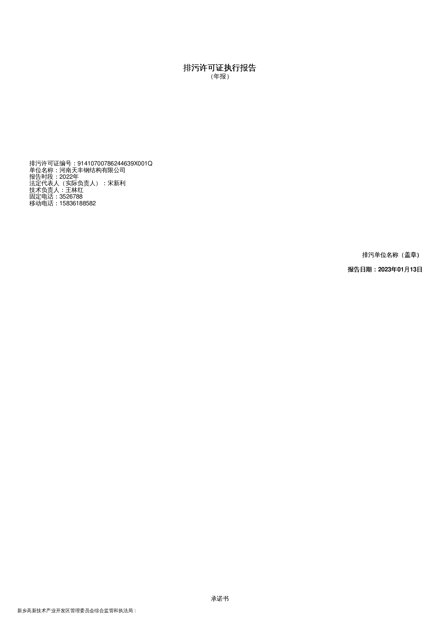 2022年排污许可证执行报告