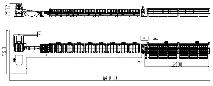 上料小车——开卷机——辊压成型机组——切断——出料小车